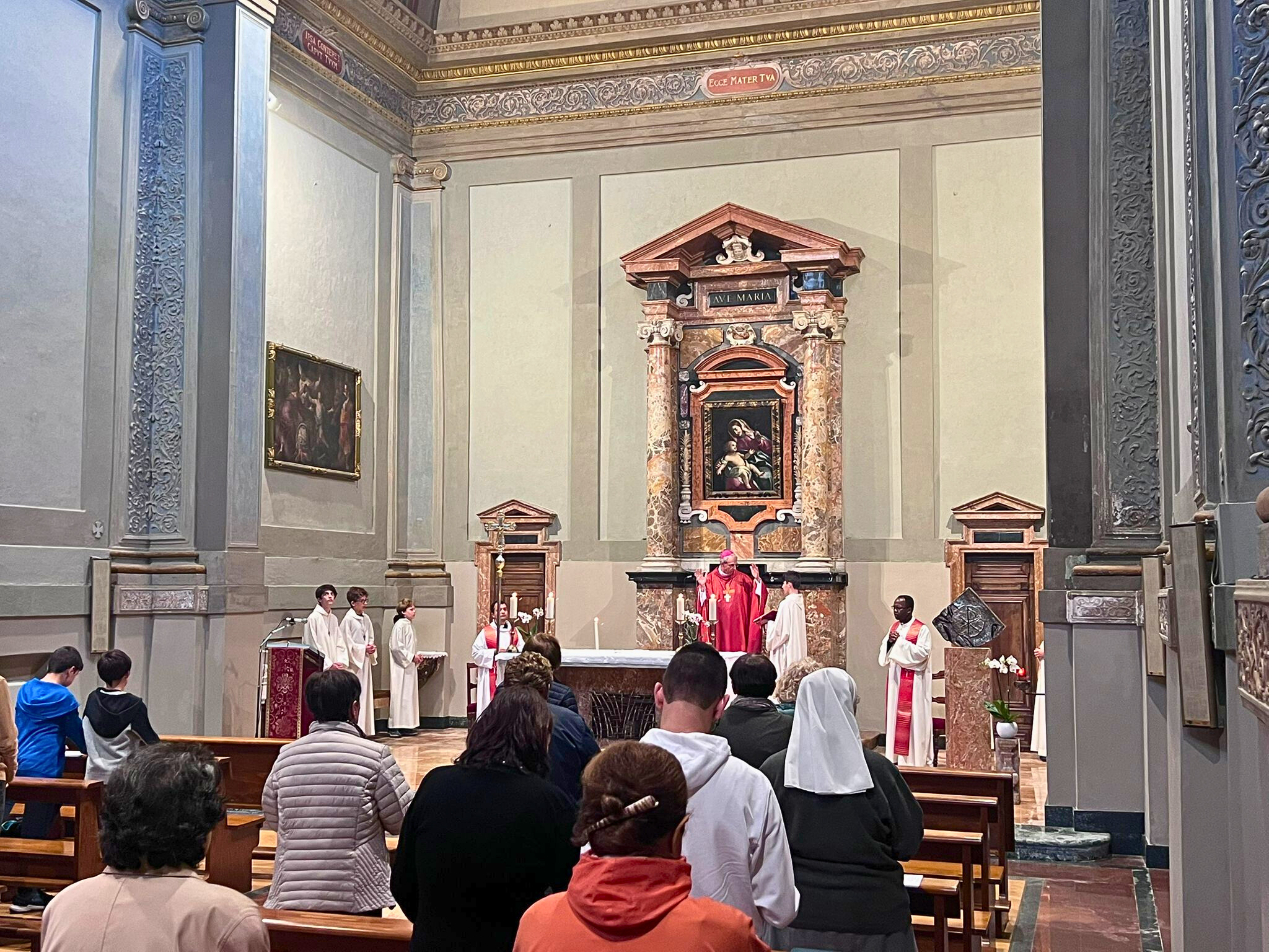 Alla messa era anche presente un gruppo di ministranti provenienti da varie parrocchie della diocesi. Sono i ragazzi del MoChi, il “Movimento Chierichetti” che una volta al mese coinvolge i ministranti più grandi (dalla 2a media in su) per degli incontri di amicizia e di formazione, che quest’anno avranno come obiettivo quello di esplorare a fondo il significato delle varie parti della Messa, dove possiamo rivivere l’esperienza dei discepoli di Emmaus. Ad avere accolto il nostro invito sono stati prevalentemente ragazzi che non avevano partecipato l’anno scorso, venendo, così, a formare un nuovo gruppo allegro e vivace. Ci sono, insomma, tutte le premesse perché si possa vivere anche con loro un bel cammino annuale insieme!