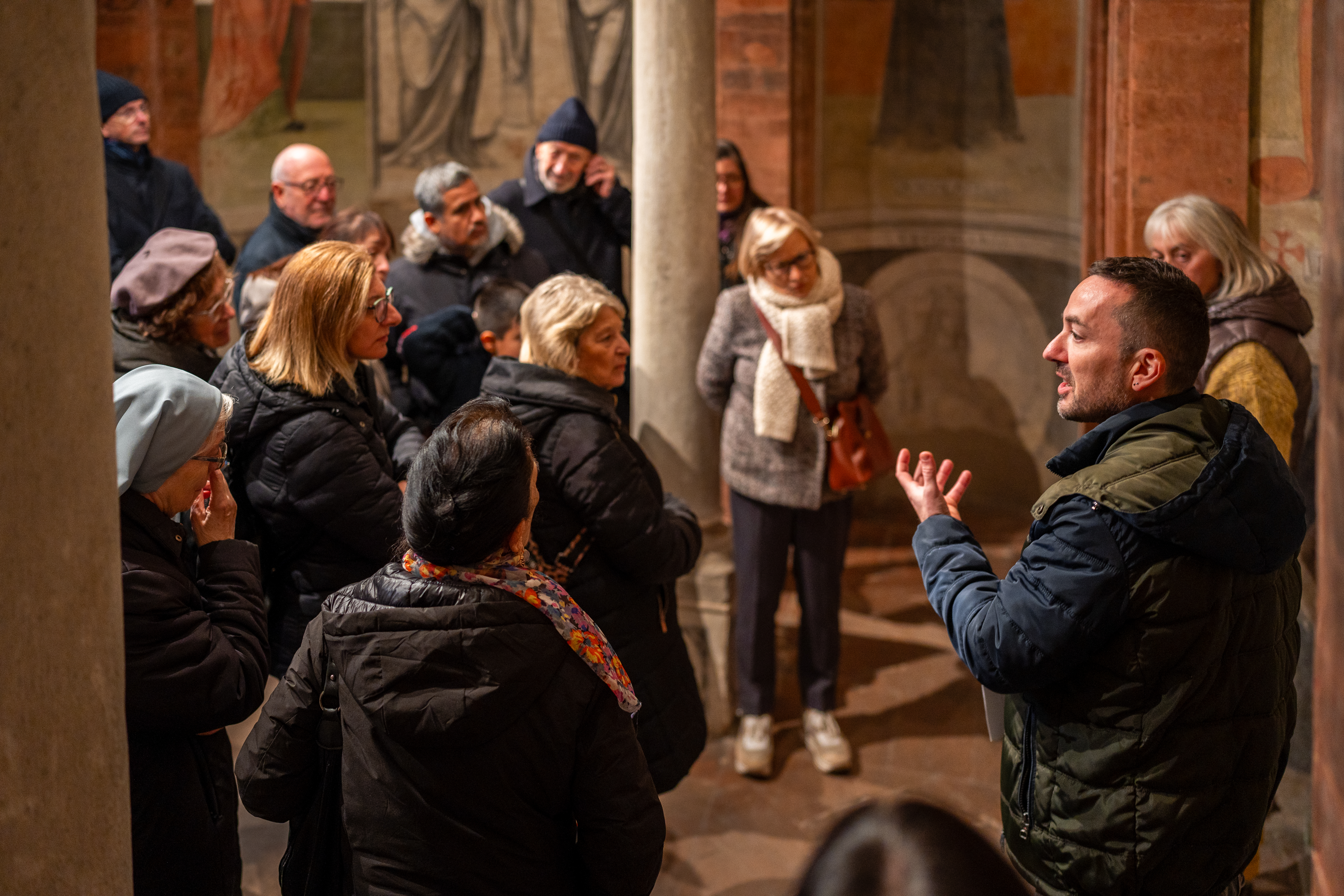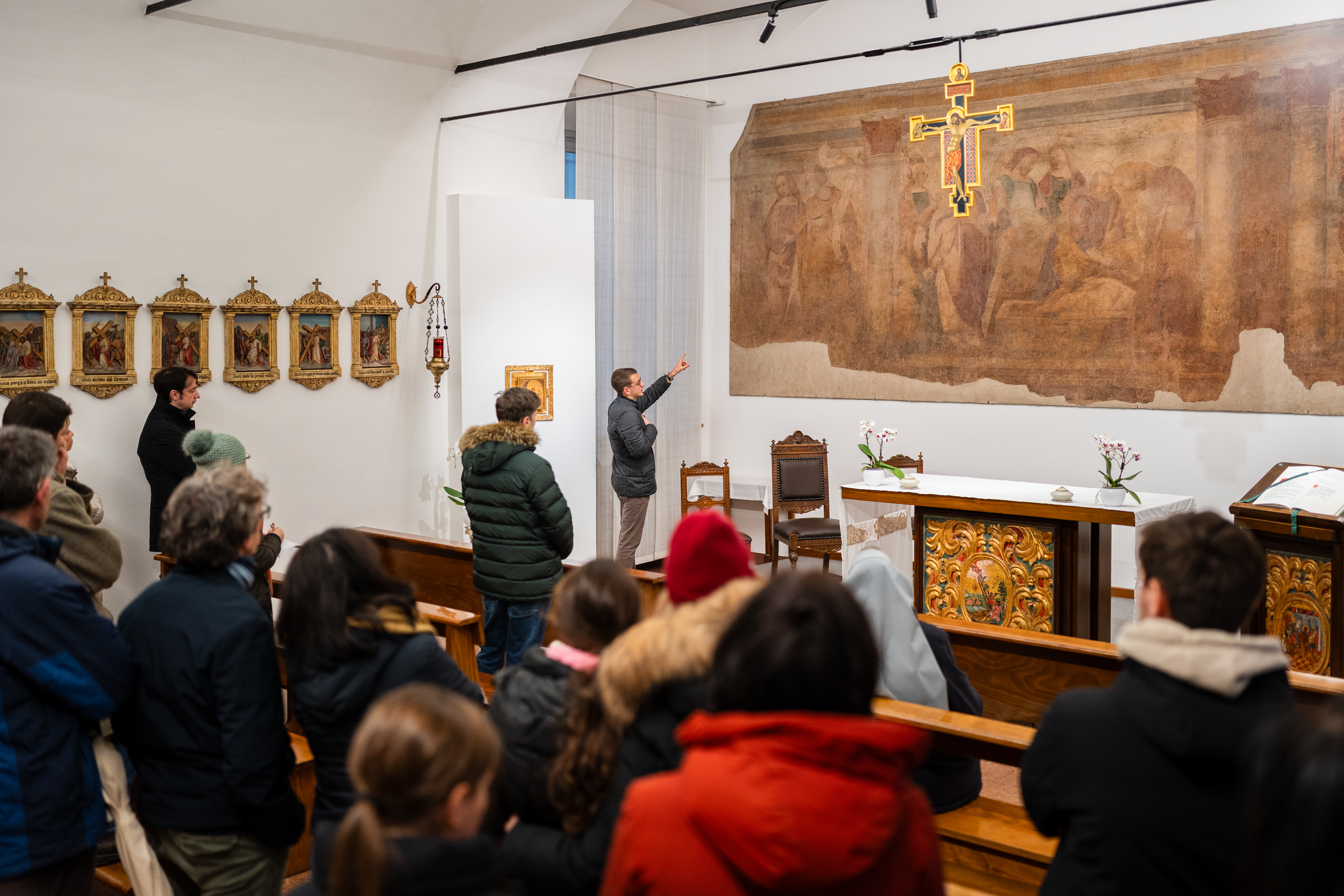 Siamo stati davvero sorpresi dal gran numero di amici che ha accolto il nostro invito, di certo molti più di quanti ci saremmo aspettati. L’Aula magna, infatti, si è pian piano riempita quasi completamente: più di cento, dunque, le presenze. Dopo il saluto del rettore e un’introduzione storica, la visita si è svolta alla scoperta degli ambienti più significativi dell’ex-monastero: la cappella del SS. Salvatore, il chiostro, il refettorio, la sala capitolare e la chiesa. È stata aperta ai visitatori anche la “Sala Segù” della biblioteca, che conserva i testi più antichi in nostro possesso (manoscritti, incunaboli e cinquecentine), nonché una copia de “I Promessi Sposi”, autografata dal Manzoni. Il pomeriggio si è poi concluso con una merenda dall’atmosfera già quasi natalizia, a base di pandoro e panettone. Davvero tanti sono stati i riscontri entusiastici che abbiamo raccolto, soprattutto da chi non era mai passato per il nostro portone, né aveva idea che potesse nascondere tante ricchezze artistiche. Parecchi amici hanno anche manifestato la loro intenzione di rimanere in contatto per eventuali altri eventi culturali e qualcuno ha addirittura voluto dare la propria disponibilità per l’organizzazione di future visite guidate. Insomma, è stata non solo un’iniziativa di grande successo, ma soprattutto anche un’occasione preziosa di avvicinare davvero tante persone diverse alla conoscenza della nostra comunità.