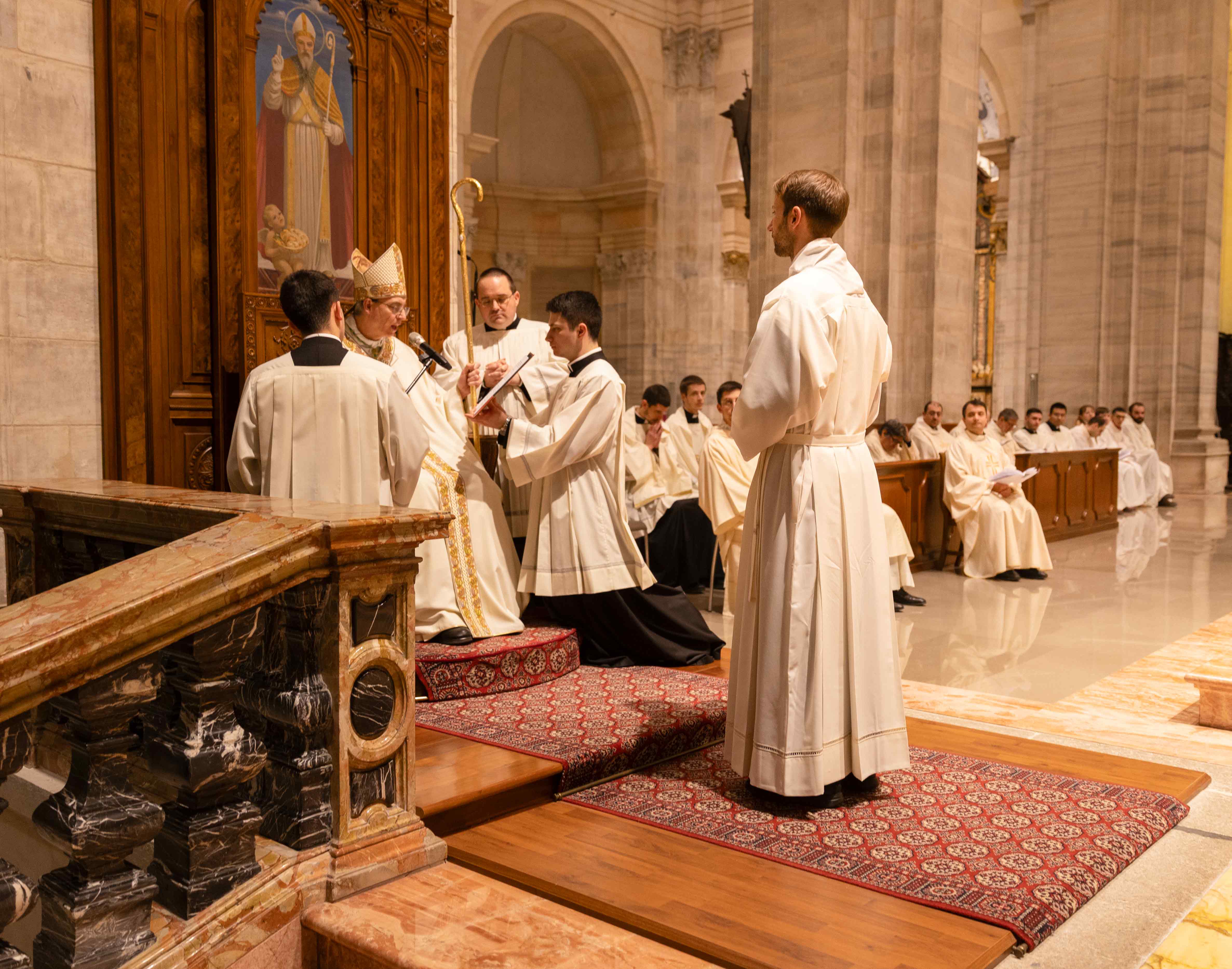 Domenica 12 gennaio abbiamo accompagnato il nostro Alessandro in una tappa importante del suo percorso verso il sacerdozio. Durante la messa degli universitari in Duomo ha ricevuto, infatti, dalle mani del vescovo il ministero del lettorato. Tante persone erano presenti a manifestargli il proprio affetto e a pregare con lui e per lui. Tra queste anche i suoi compagni di seminario a Bergamo, diversi sacerdoti, parenti, amici e anche alcuni giovani del percorso dei “7 Segni” che, insieme a don Giovanni, Alessandro sta guidando in quest’anno pastorale. Proprio a questo suo servizio ha fatto riferimento il vescovo durante l’omelia, quando ha ricordato un passo dell’esortazione apostolica Gaudete et exsultate citato da Alessandro durante una catechesi: “Voglia il Cielo che tu possa riconoscere qual è quella parola, quel messaggio di Gesù che Dio desidera dire al mondo con la tua vita”. Questo è stato l’invito rivolto a tutti i presenti, soprattutto ai giovani, quello di scoprire dentro di sé la chiamata alla santità che riguarda tutti i battezzati, ciascuno nella propria vocazione specifica. Momento culminante della celebrazione è stata la preghiera di benedizione dopo l’omelia, al termine della quale è stato consegnato ad Alessandro il libro della Sacra Scrittura, con l’invito a meditarla assiduamente per esserne intimamente illuminato e diventarne fedele annunciatore ai suoi fratelli. Tanti sono stati, poi, i presenti che si sono trattenuti dopo la fine della celebrazione per un saluto personale ad Alessandro, testimonianza della particolare vicinanza di tutta la Chiesa pavese.