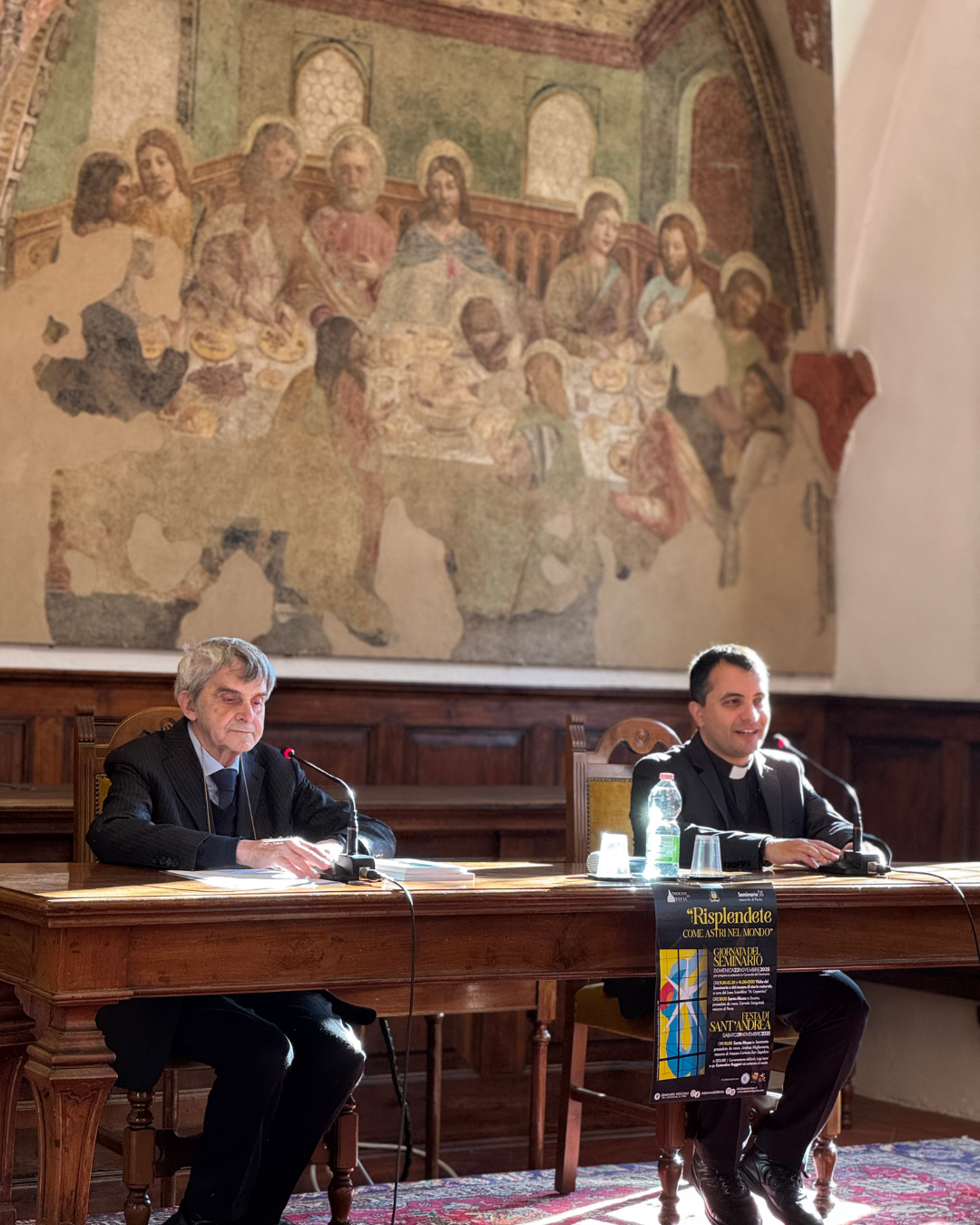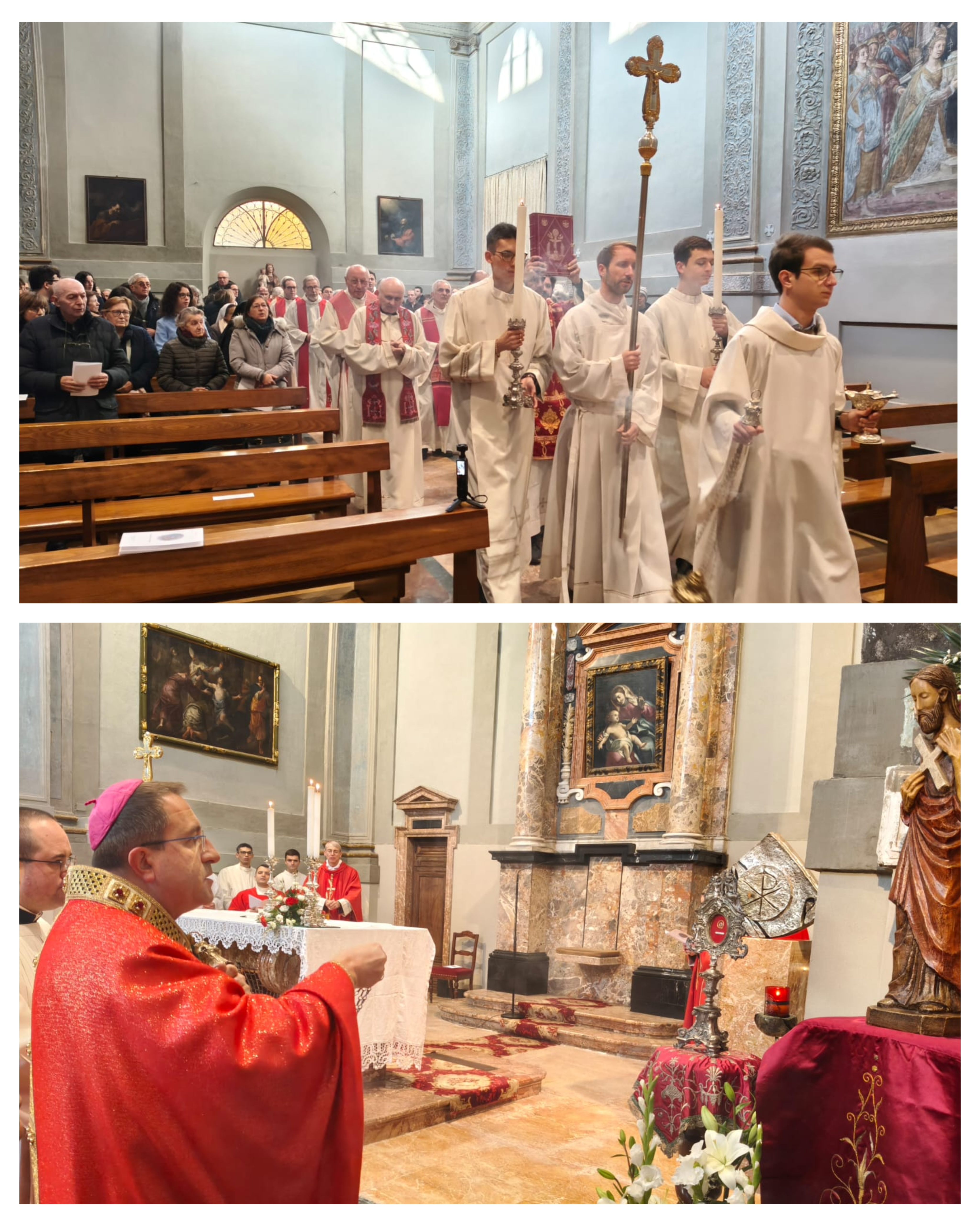 Come da tradizione, anche quest’anno abbiamo celebrato pieni di gioia e riconoscenza la solennità di Sant’Andrea apostolo, patrono del nostro seminario. Tutta la mattinata di sabato 29 novembre è stata dedicata ai festeggiamenti in onore del santo, a partire dalla Messa presieduta da mons. Andrea Migliavacca, vescovo di Arezzo-Cortona-San Sepolcro. Il vescovo Andrea ricorda quest’anno 10 anni dalla sua ordinazione episcopale, avvenuta nella Cattedrale di Pavia il 9 dicembre 2015. Prima di essere ordinato vescovo, era stato per 15 anni rettore del nostro seminario. Questa giornata è stata per lui l’occasione, come ha ricordato nell’omelia, per ringraziare tutti coloro che l’hanno accompagnato nel suo cammino di sequela del Signore e per sottolineare come ogni vocazione ha origine da uno sguardo d’amore di Gesù su ciascuno di noi, come è stato per l’apostolo Andrea. L’invito rivolto dal vescovo ai presenti è stato quello di riscoprire la propria vocazione alla luce di questo sguardo, che ci invita continuamente a cambiare prospettiva, a non considerare più le cose fatte da noi, ma quelle che Dio ha compiuto e continua a compiere nella nostra vita.